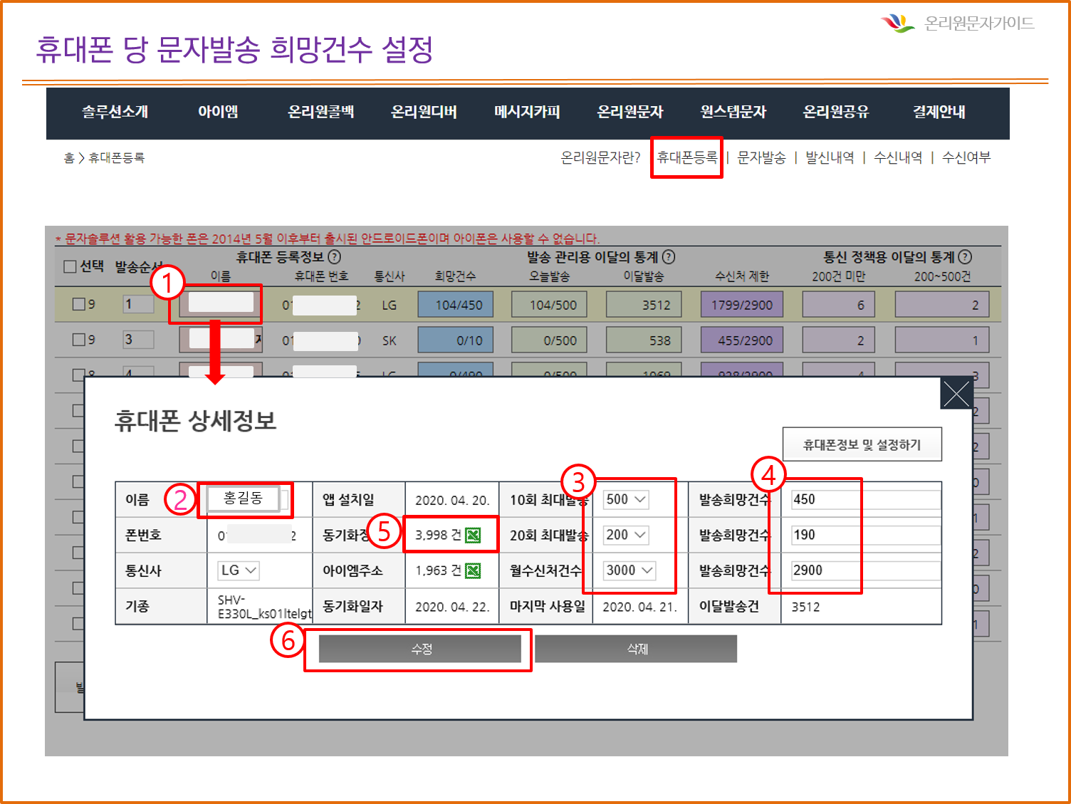문자 [온리원문자] 발송건수 및 수신처수 직접 설정 2020-04-22 46080